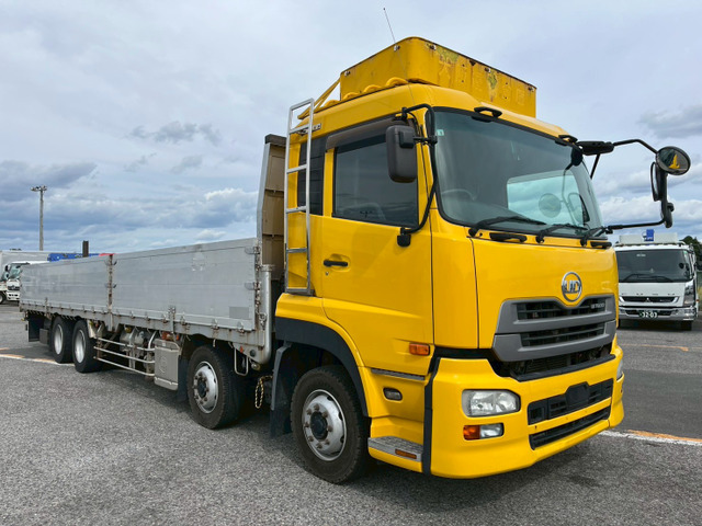 ご覧頂きありがとうございます!! ●今回の車両は、 【UDトラックスクオン4軸低床アルミブロック平ボディ9600ボディ2デフ5方開あおり後輪エアサスAT車整備記録簿あり】 の出品になります。 ☆整備記録簿あり!! ☆4軸低床!! ☆後輪エアサス!! ☆上物メーカー:ヤハタ産業製 ☆荷台内寸法(p):(約)長961 幅241 高78 ☆リターダ付 ☆鉄床 ☆床フック:12対 ☆5方開あおり ☆最大積載量:13500s ☆2デフ ☆AT車 ☆10830t(380馬力・ターボ) ☆実走行 ☆ベッド付 ☆キーレス ☆集中ドアロック ☆電格ミラー ☆ヒーター付きミラー ☆坂道発進補助装置 ☆バックモニター ☆ETC付 ☆オートクルーズ ☆接近センサー ☆タコグラフ ☆ディスチャージヘッドライト ■当車両を50km程試乗しましたが、不具合や問題はありませんでした!! ■ローンやリースなどお客様のニーズに合わせた対応も可能です!! ■色替え(塗装)をご希望の方はお気軽にご…
