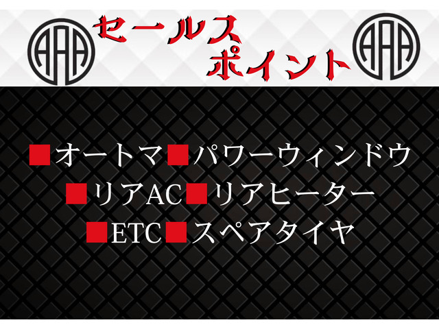 ご覧頂きありがとうございます。 ■この車への「お問合せ」・「無料見積り依頼」、「在庫確認」は、お気軽にどうぞ! ■この車両以外にも「車選びドットコム」におすすめの中古車を掲載しております。 他の在庫車種、お店へのアクセスは【販売店情報ページ】をご覧ください。 問合わせ・来店の際には「中古車情報サイト(車選びドットコム)を見た」とお伝えください。 店頭商談中・売約済の場合もありますので、ご来店の際は事前にお問合せ頂き、該当車両の有無をご確認ください。 スタッフ一同、お客様からのお問合せをお待ちしております。 ★ご高覧頂きありがとうございます!★ ■早期納車可 ■オートマ ■パワーウィンドウ ■AC ■ETC ■リアAC ■リアヒーター ■スペアタイヤ ★走行無制限12ヶ月無料保証付 *保証費用は本体価格に含まれています。 保証詳細★下記は不具合ではありません。保証内容になります★ 『*警告チェックランプ常時点灯(…