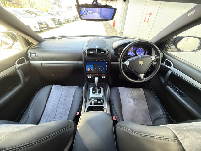 ポルシェ カイエン(平成22年式、ブラック)は個性的で快適なSUVです。10インチナビ、有機ELナビシステム、後席モニターで乗車体験をさらに向上。バックカメラやABS、安全機能はしっかり装備。豪華な内装には、Porscheロゴ刺繍入りのシートカバーと本革シートがあり、長距離ドライブも快適です。