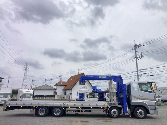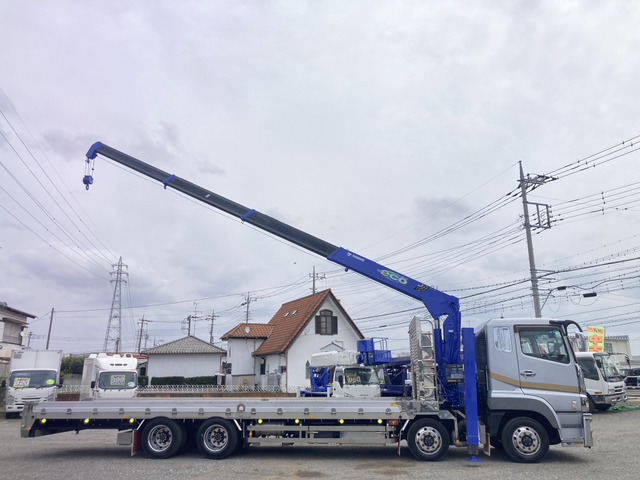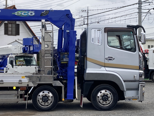 平成25年式!稀少の4段クレーンハイジャッキ・ステンレスボディ重機回送車入荷しました。 ☆めったに出ないステンレス車両です ☆エアサス車 ☆4軸25トンベース積載11トン予定 ☆荷台内寸:8450×2500mm ☆PABCO製オールステンレスボディで腐食しません ☆横ネタも串刺しステンレスで腐食無し強靭です ☆ステンレスサイドフレーム ☆ステンレス鳥居収納庫付き ☆可倒式アルミアオリ:高さ180 ☆埋め込みフック多数 ☆床下左右ラダー用収納あり:収納可能サイズ幅350高さ230長さ2300 ☆長物用ステンレス収納BOX:幅280高さ190長さ2350 ☆車両シャーシ表面には錆ありますがボディは強靭錆腐食なし! ☆タダノ2013年製ラジコン4段クレーンハイジャッキ モデル:TM-ZE504LHRE スペック:410-505-01274 シリアル:EW7260 製造年月:2013年7月 ☆ウインチ ☆2デフロック ☆アルコアアルミホイール フロント:265/70R19.5 リア3軸:245/70R19.5 ☆左右電動調整格納ミラー…