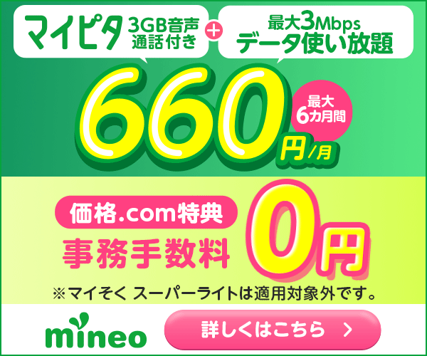 個人的にmineoの格安なのに高いクオリティに大満足のため