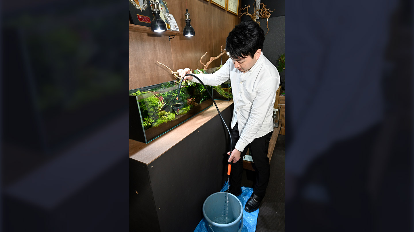 また、古い水に慣れた魚を別の水槽に移したりしたときに、水質の違いによるショックが大きなダメージとなる場合もあります。「水換え不要」を謳っている商品もありますが、有害な物質を、直接的な害のない成分に変換はするものの、さまざまなものが蓄積していく状況には変わりなく、キリッと澄んだ水をキープし続けるには、定期的に古い水を新しい水と交換する「水換え」を飼育者の手で行う必要があるのです。「部屋の空気の入れ替え」と同じことだと考えてみてください。