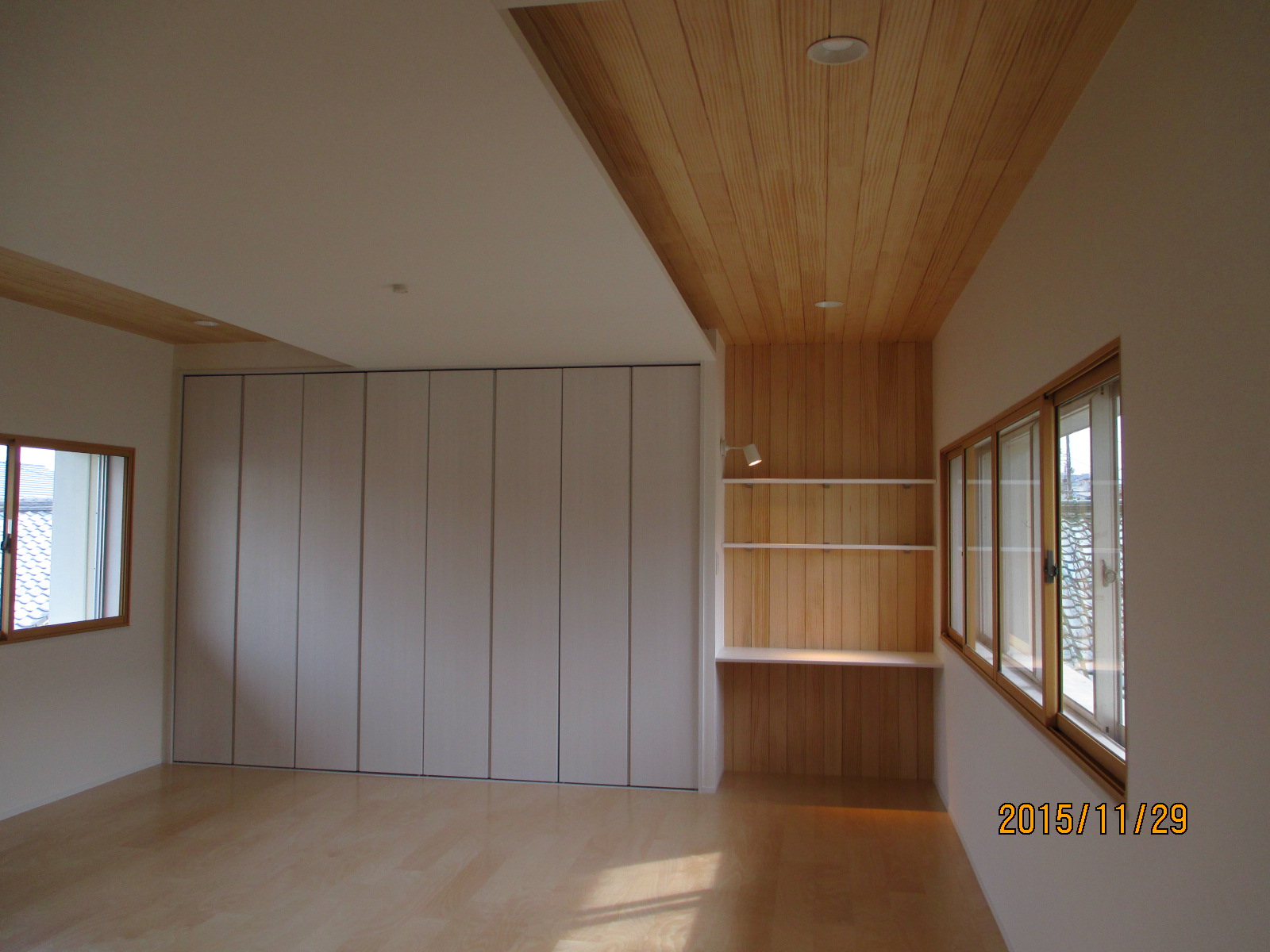 2階3室を無くしてLDKと寝室に改修し 広々したLDKを確保しながら寝室や収納・納戸など設置提案 させて頂きました。圧迫感のある天井もうまく仕上げることができました。