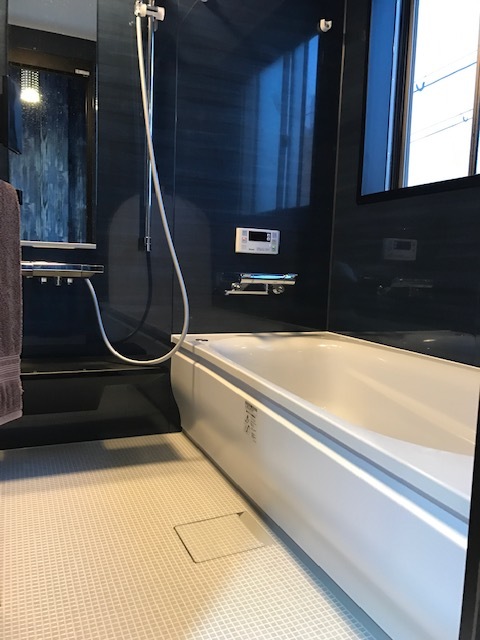 タイル貼りの冷えやすい浴室を、あたたかくて清掃もお手軽なユニットバスにリフォームしました。 既存の1616サイズから1717サイズにサイズアップ。 ゆったり足をのばして入浴ができるようになり、お客様にご満足いただける浴室になりました。 壁の色はお客様にお選びいただき、お客様が求めるお客様好みの空間に仕上げました。