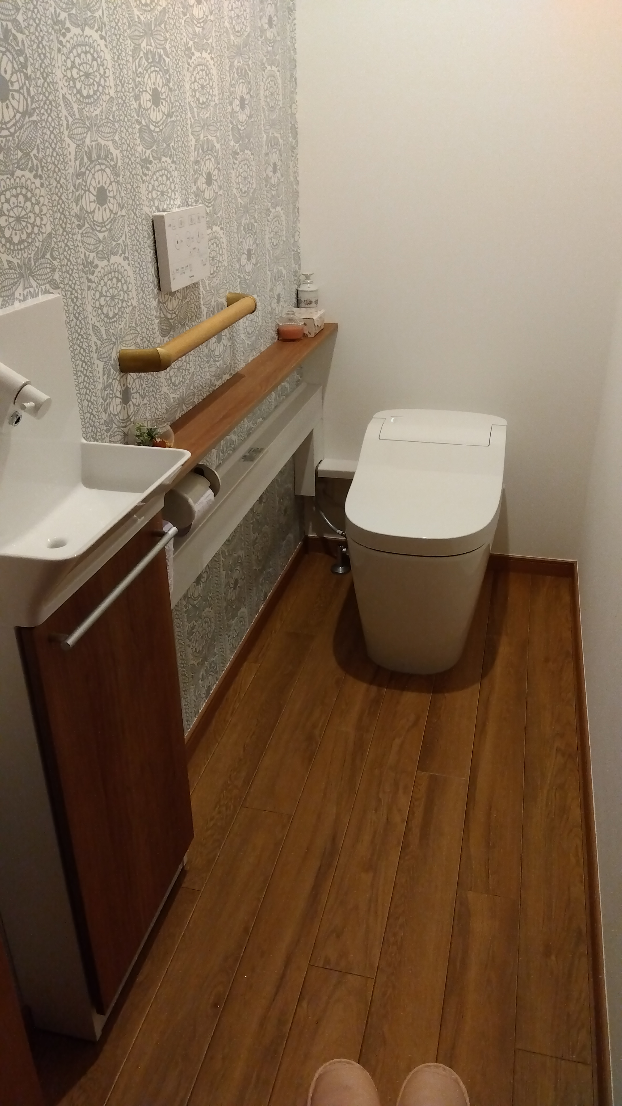 タンクレストイレにしたい 手洗い器を増設したい 壁紙も床もおしゃれにしたい